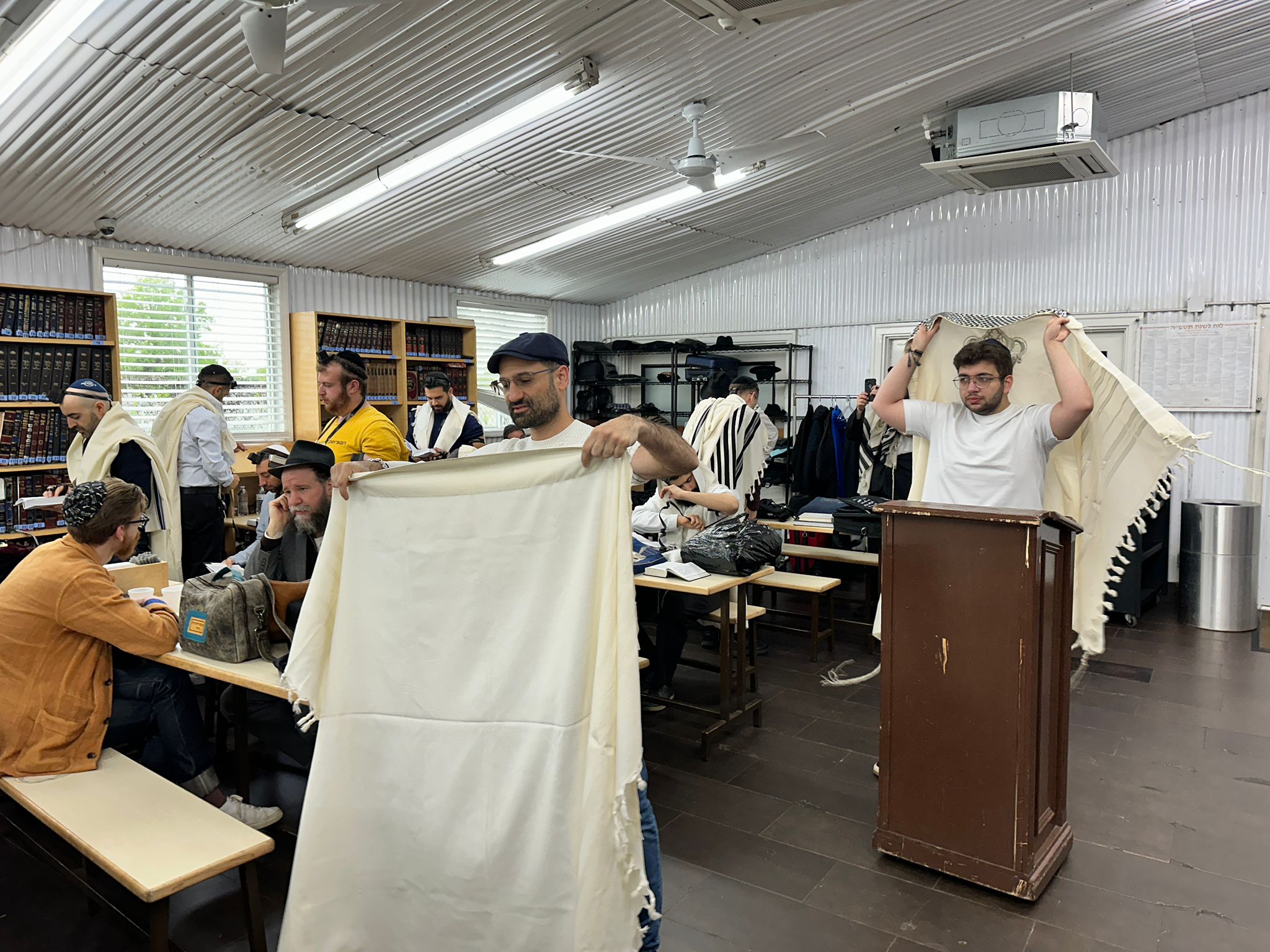 Am Abend vor unserer Abreise nach New York fand ein besonderer Vorbereitungs-Schiur mit Rav Israel Netanelov statt. Gemeinsam lernten wir, wer der Rebbe war, was er für das jüdische Volk bewirkte und was es bedeutet, zum Grab eines Zadiks zu fahren, um dort zu beten – für sich selbst, für die Familie, für die Gemeinde und für Am Jisrael. Dieser Schiur war ein gelungener, spiritueller Auftakt für unsere bevorstehende Reise. Zu unserer großen Freude durften wir außerdem einen besonderen Gast empfangen: Rabbiner Yoav Akrisch, der extra aus Israel anreiste, um uns als Maschpia mit seinen Worten von Tora und Chassidut zu stärken. Begleitet wurde er vom Musiker Schimi Yonaev, der mit seiner Musik unsere Herzen öffnete und die Reise auf einzigartige Weise bereicherte. Nach der Ankunft in New York wurden wir herzlich empfangen und mit einem leichten Buffet begrüßt. Am nächsten Morgen begann der Tag mit „Mikve, Kaffee und Chassidut“, bevor wir zum Ohel fuhren. Dort erlebten wir den wohl emotionalsten Moment unserer Reise: das Schreiben eines Briefes an den Rebbe. Jeder schrieb, was ihm auf dem Herzen lag – für die Kinder, die Familie, die Gesundheit, die Gemeinde und das Volk Israel. Mit Tränen und voller Hingabe trugen wir die Briefe am Grab des Rebben und seines Schwiegervaters vor. Anschließend wurden sie, wie es Tradition ist, zerrissen und auf das Grab gelegt, im tiefen Vertrauen, dass unsere Gebete von G-tt erhört werden. Nach diesem ergreifenden Erlebnis fuhren wir nach Crown Heights, ins berühmte 770-Gebäude, die Synagoge und das Zentrum des Rebbes. Dort erwartete uns ein reichhaltiges Frühstück, begleitet von stärkenden Worten unserer Rabbiner sowie Gesang und Tanz. Wir lernten auch das Lied der Reise: „Becha Haschem Chassiti“ – ein Vers aus Tehilim.